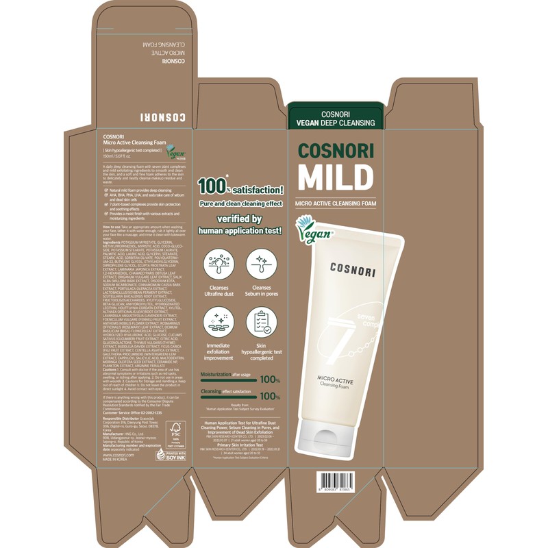COSNORI Micro Active Cleansing Foam – Vegan, Non-irritating Face Cleanser, Skin soothing, 7 Plant Extracts Daily Face Wash, 5.07 fl oz