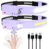 COSOOS - Linterna recargable con 2 LED, faros delanteros brillantes, diadema ajustable para mujer, haz ancho de 1000 lúmenes y luz puntual, sensor de movimiento, 2.4 onzas, equipo de campamento ligero