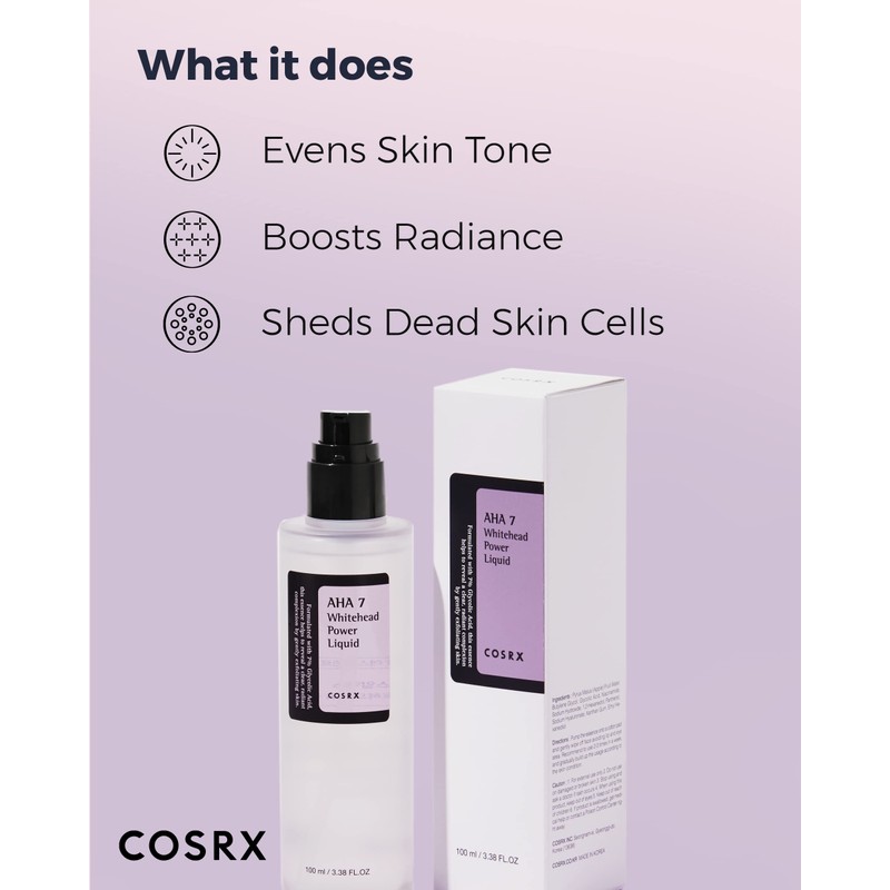 COSRX 7% Glycolic Acid Whitehead Removing Power Liquid, 3.38 fl.oz, AHA Exfoliant, Exfoliating Toner for Face & Body, Pore Minimizer, Korean Skin Care