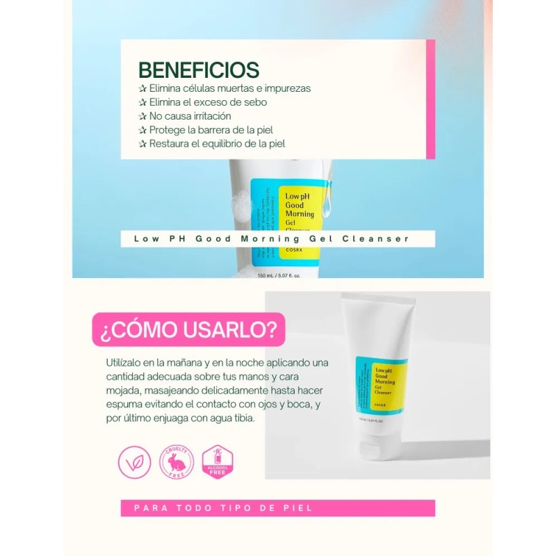 Cosrx - Gel Limpiador Con Ph Bajo Good Morning 150 Ml Momento de aplicación Día/Noche Tipo de piel Todas