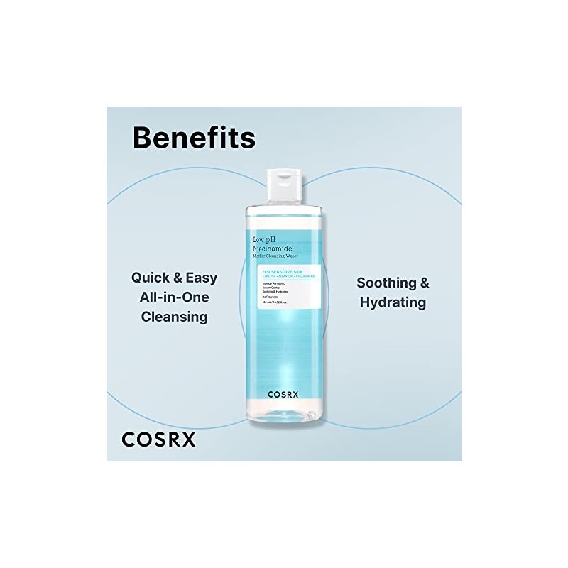 COSRX Low pH Niacinamide Micellar Cleansing Water Daily Mild Facial Cleansing Wash for Sensitive Skin, Sebum control, Korean Skin Care (13.52fl.oz/400ml)
