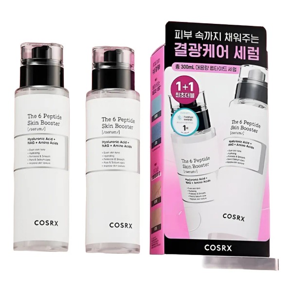 ¡Duplica los beneficios para tu piel con esta oferta exclusiva de K-Beauty! 🎁 El Cosrx The 6 Peptide Skin Booster Serum en formato 1+1 te trae no uno, ¡sino dos envases de este potente suero para una renovación completa! Formulado con una avanzada combinación de 6 tipos de péptidos, este booster es tu aliado definitivo para mejorar la elasticidad, suavizar la textura y revitalizar la piel, preparándola para absorber mejor los siguientes pasos de tu rutina. ¡Es la inversión perfecta para una piel más joven y resistente! 🚀🌟