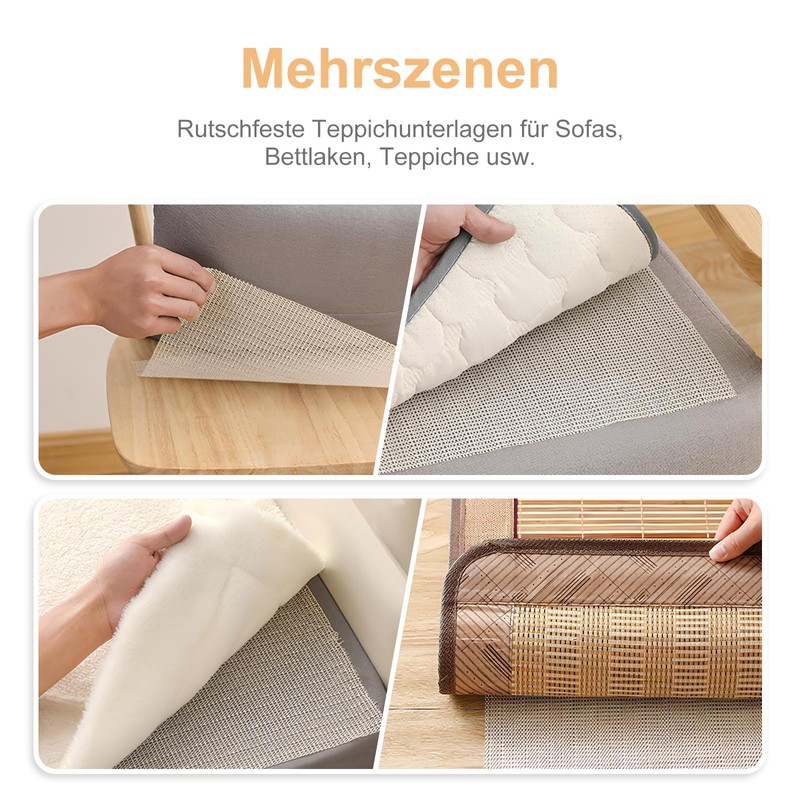 - Versatile: Our non-slip carpet pad is suitable for sofa cushions, sheets, trays, cars, drawer pads, shelves, etc., to prevent sheets, sofa cushions, carpets, mattresses from slipping, reducing wear on smooth surfaces such as drawers, cupboards, etc.