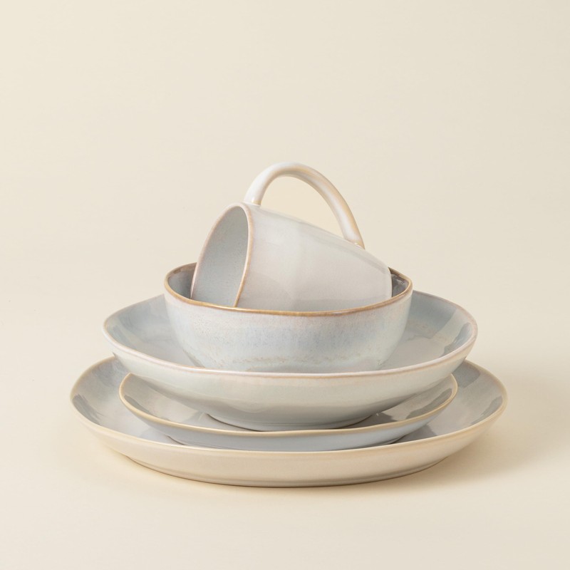 - BRISA COLLECTION - The blended white and blue glazes and organic shapes transport us to the intricate landscape of lagoons, canals, salt works, and sandy beaches stretching across deserted islands, this collection adds light to every gathering and turns any table into a memorable experience