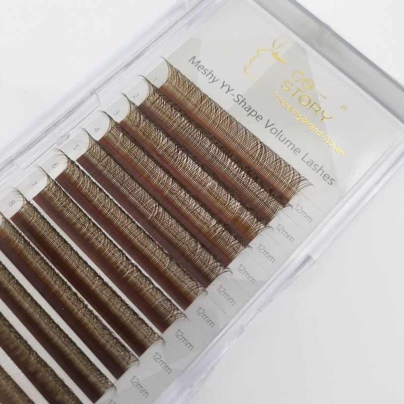 Costory Brown YY Eyelash Extensions Double Tips Weave Art Y Shape False Lashes Premade Fans 4D Volume Soft Natural Hand-woven Blooming Eyelashes Supplies(Thickness 0.07mm D Curl 14mm)