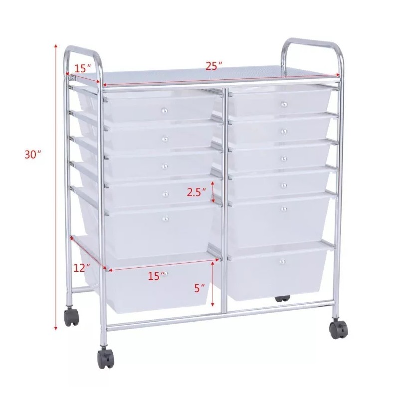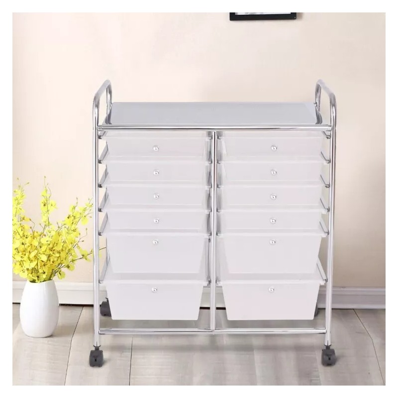 Costway 12-Drawer Utility Storage Rolling Cart w/Removable Drawers and Lockable Wheels
