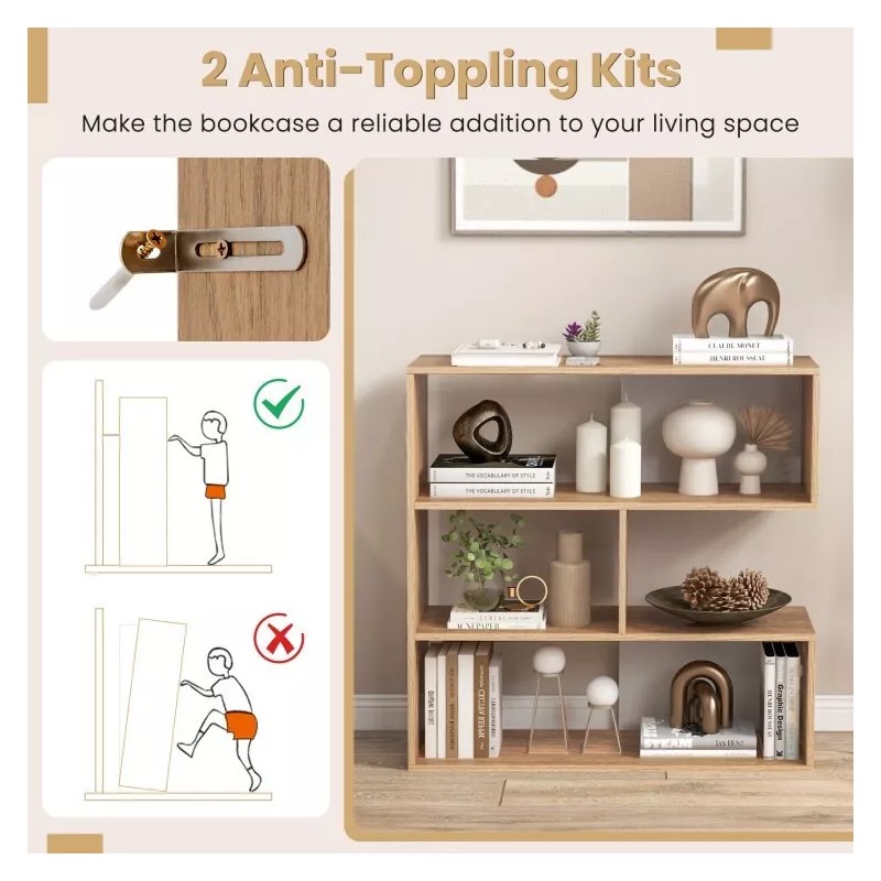● Enhance Stability: 2 anti-toppling kits ensure stability and prevent accidental tipping, making it safe for families with children or pets. Any items are securely stored on this sturdy and reliable bookshelf.