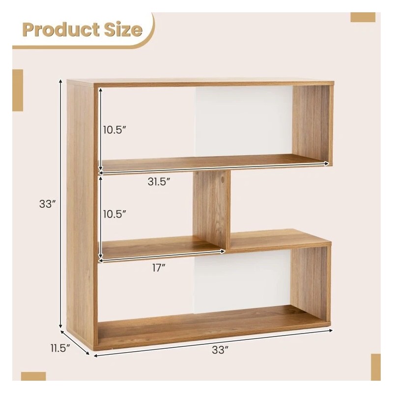 Costway 3-Open Shelf Office Bookcase Bookshelf Storage Organizer w/Anti-Topplin