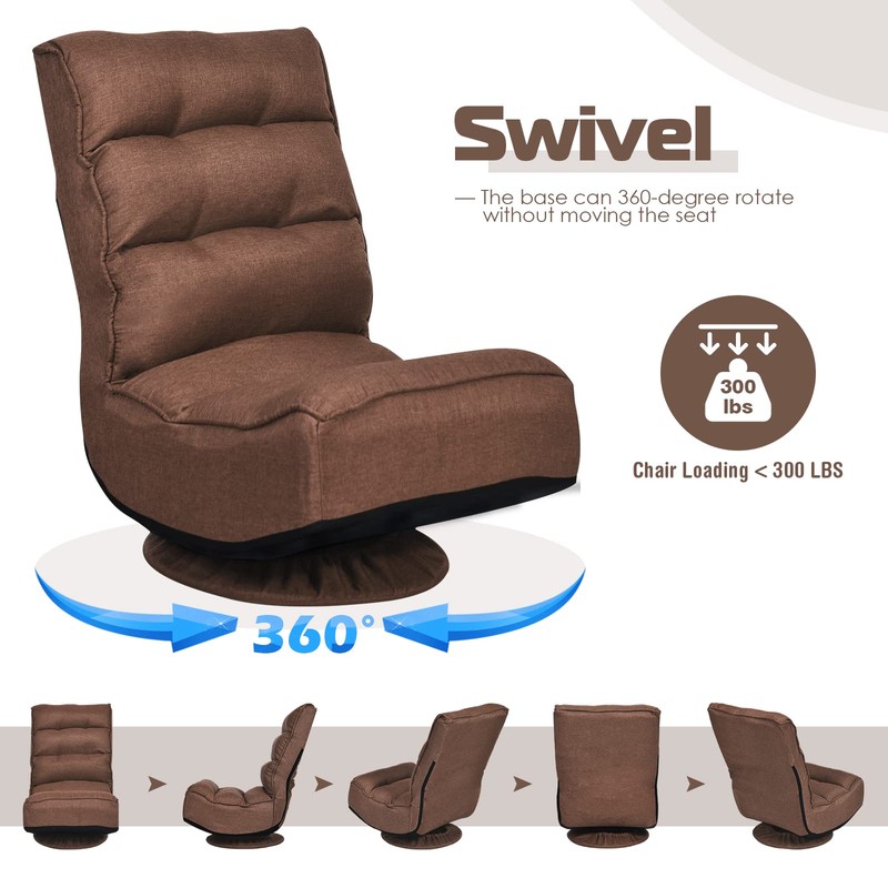 COSTWAY Folding Floor Chair, Adjustable 5-Position Video Gaming Chair with 360 Degree Swivel, Detachable Cover, Padded Backrest, Multipurpose Living Room Floor Lounger for TV Reading Playing, Coffee