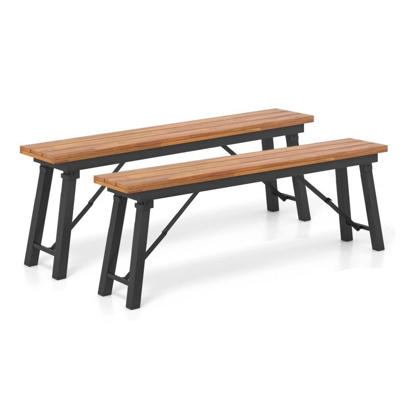 ● Sturdy and Stable Construction: The acacia wood dining benches are supported by high-strength powder-coated metal frames, ensuring good rust resistance and a large loading capacity of 800 lbs. And there exist anti-slip footpads on the bottom for enhancing stability.