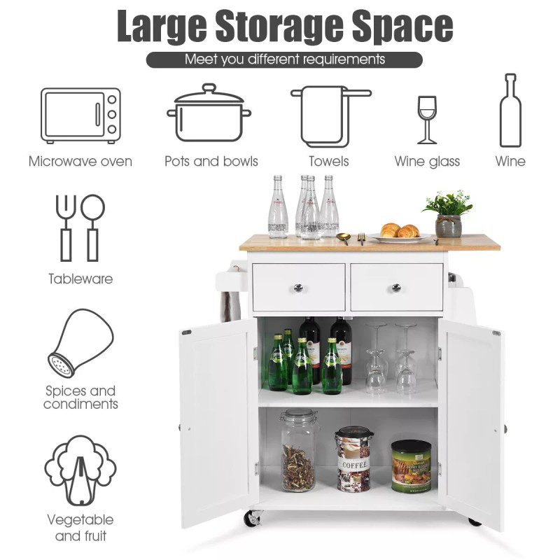 Costway Rolling Kitchen Island Utility Trolley w/Storage Cabinet & Spice Side Rack White