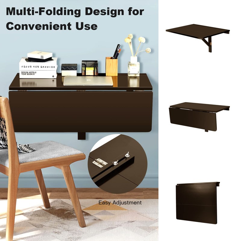 COSTWAY Wall Mounted Folding Table, 31.5" x 23.5" Drop-Leaf Floating Writing ...
