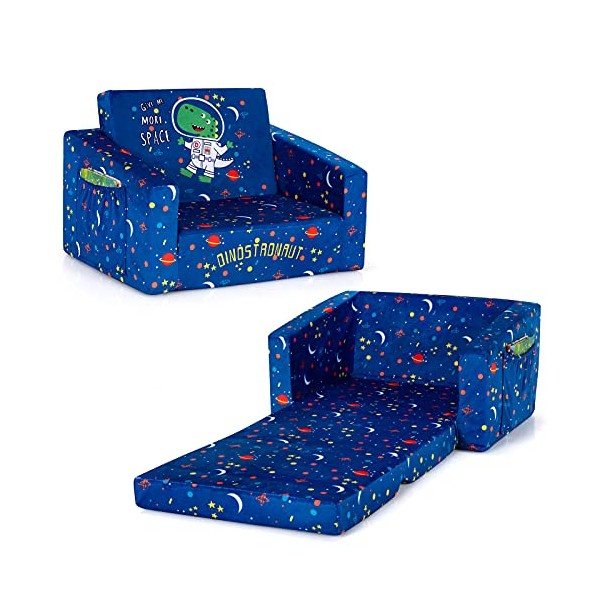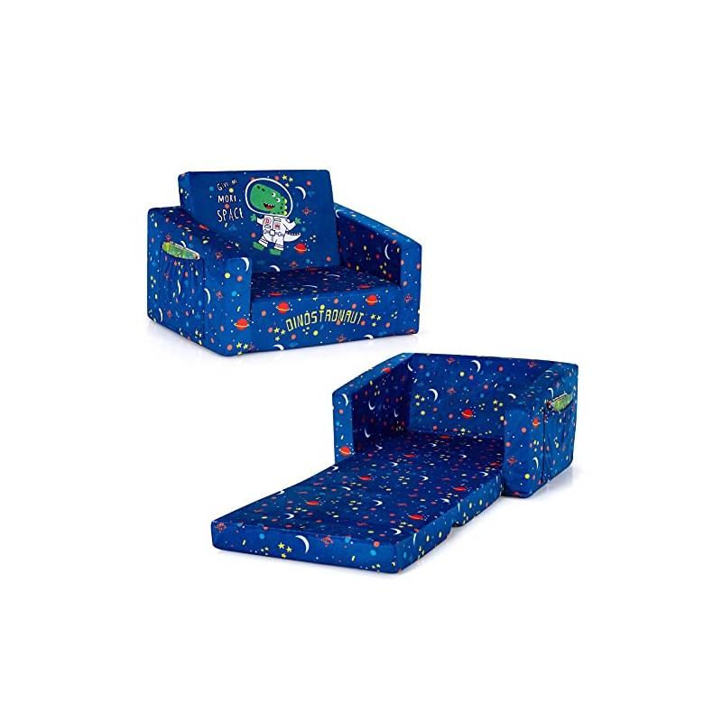 Costzon Kids Sofa, 2 in 1 Flip Open Couch w/Sturdy Sponge Construction, Velvet Fabric, Storage Pockets, Toddler Armrest Chair Bed for Nap Play Sleep, Ideal Gift for 0-4 Years Old Children, Blue Space