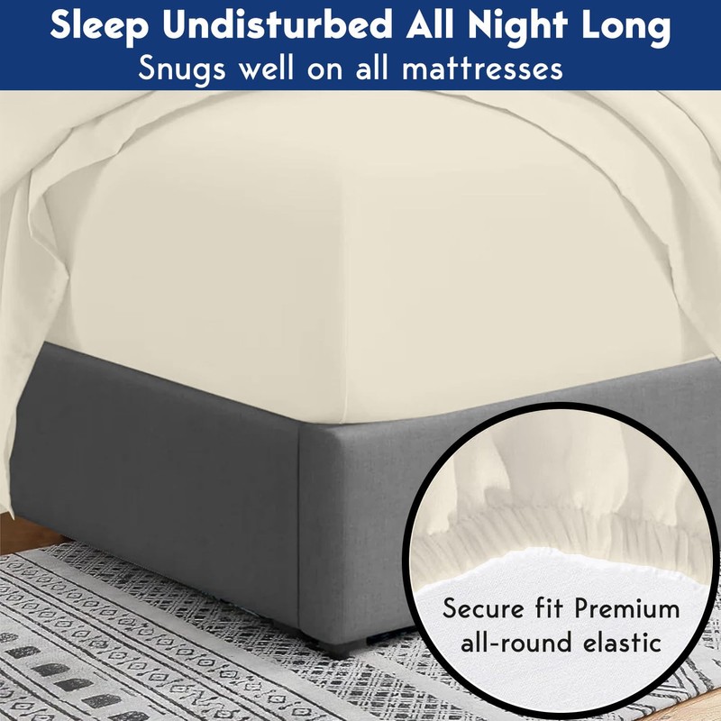 - The fitted sheet comes in a classic ivory color that complements any bedroom decor, adding a touch of elegance and modernity. The rich black color retains its vibrancy through many washes, thanks to the colorfast properties of microfiber.