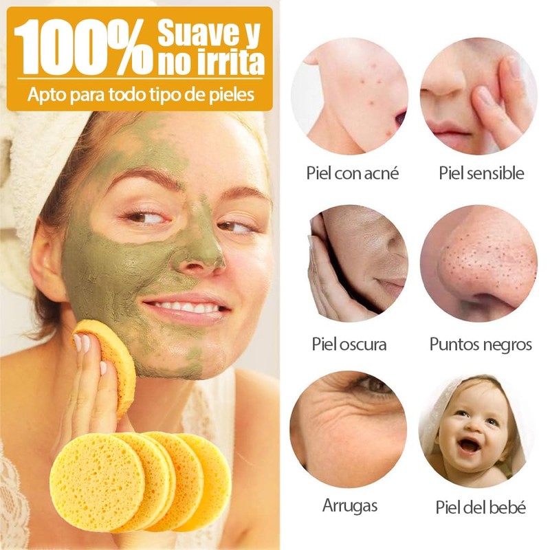 - 【Todos los Materiales Naturales】Esponjas faciales de celulosa comprimida están fabricadas con fibras de celulosa 100% naturales, productos químicos agresivos ni olores. Respetuoso con el medio ambiente, absorbente y no irritante para la piel, perfecto para todo tipo de piel, incluyendo los tipos de piel sensible tierna.
