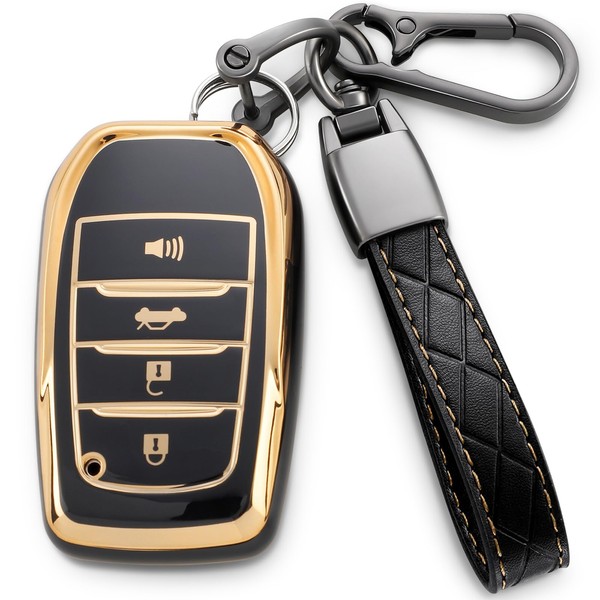 COTIYBOK for Toyota Key Fob Cover,Leather Keychain Soft TPU Protection Key Case for 2019-2024 Venza,Grand Highlander,Land Cruiser,RAV4 Prime,Fortuner,Corolla Cross,Hilux Smart key 4 Buttons(A Black)