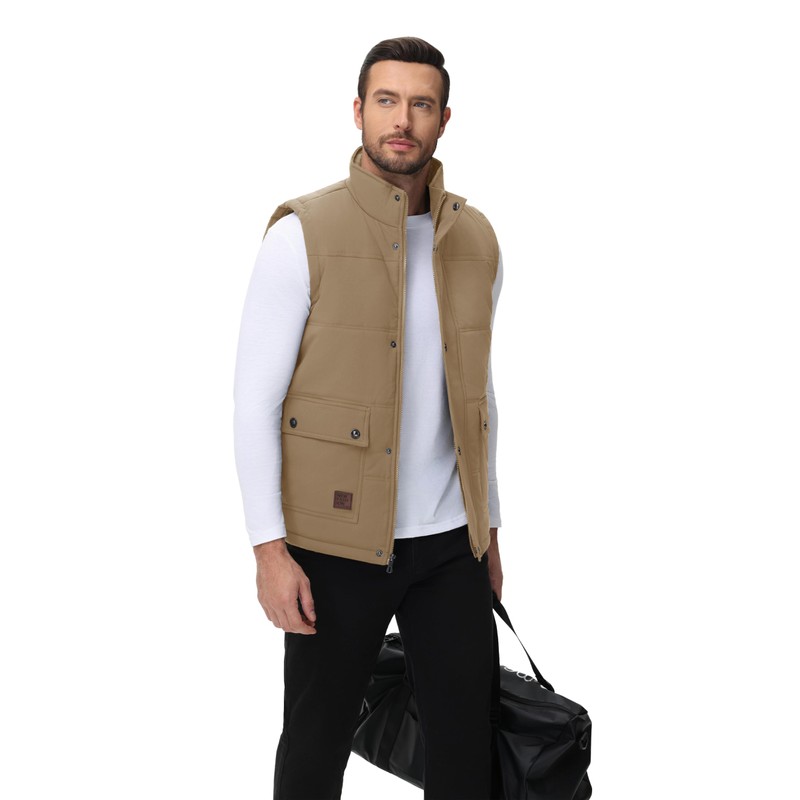 Cotrasen Men's Winter Outerwear Vests Casual Fleece Lined Vest Warm Puffer Sleeveless Jacket Khaki M