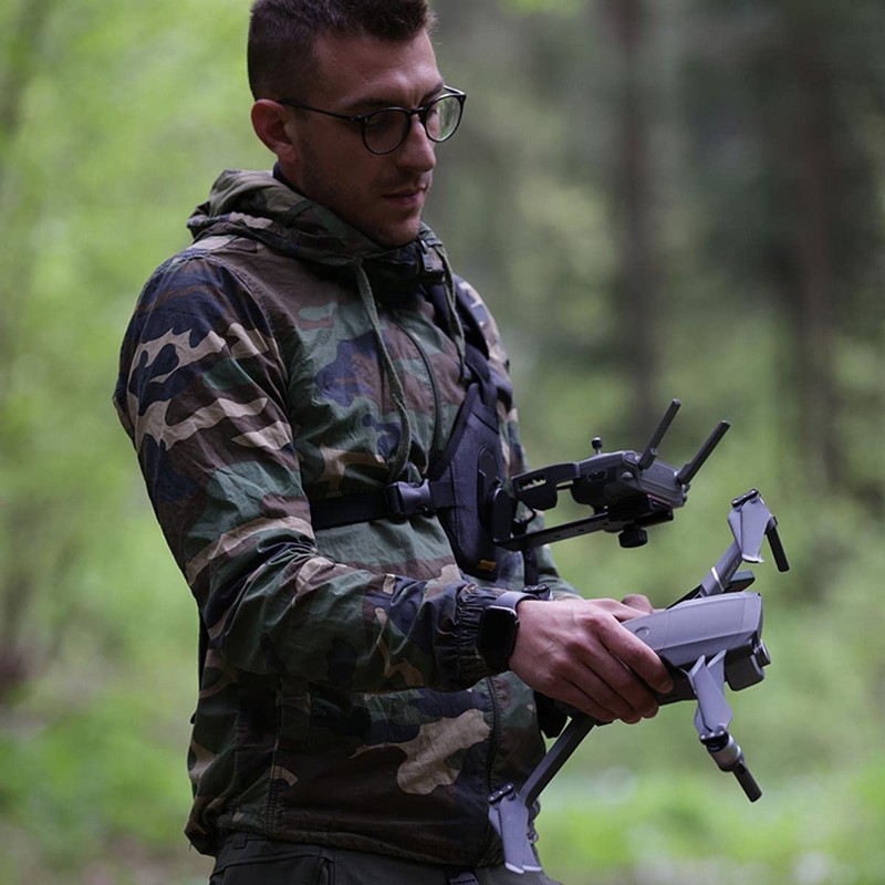 SKOUT the world's most comfortable, secure, and accessible, Sling-Style camera, binocular and drone remote harness. SKOUT holds your optics close to your body so, nothing moves around. Active humans take note – SKOUT is ergonomically designed to hug your core, allowing you to deploy your gear instantly and quietly. The SKOUT's key feature is its fixed-position carrying system. Our patented Twist & Lock mount secures your camera or binoculars, or our new Flytdeck (Hardware depending) to your chest. SKOUT offers great stability and weight distribution while keeping your optics accessible