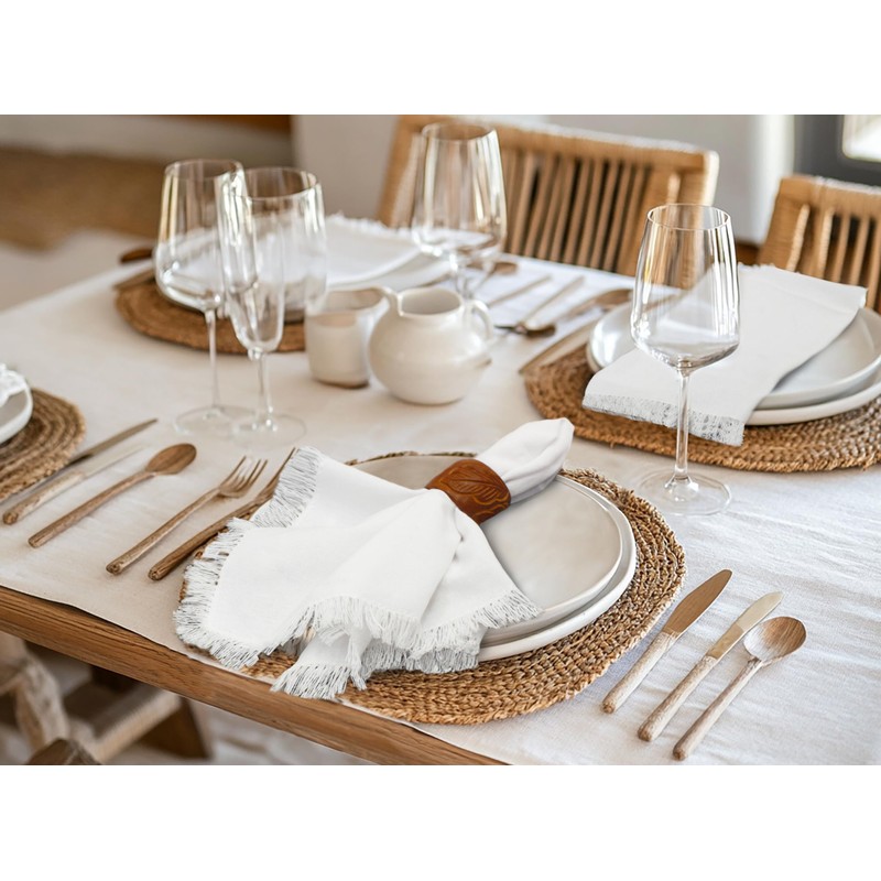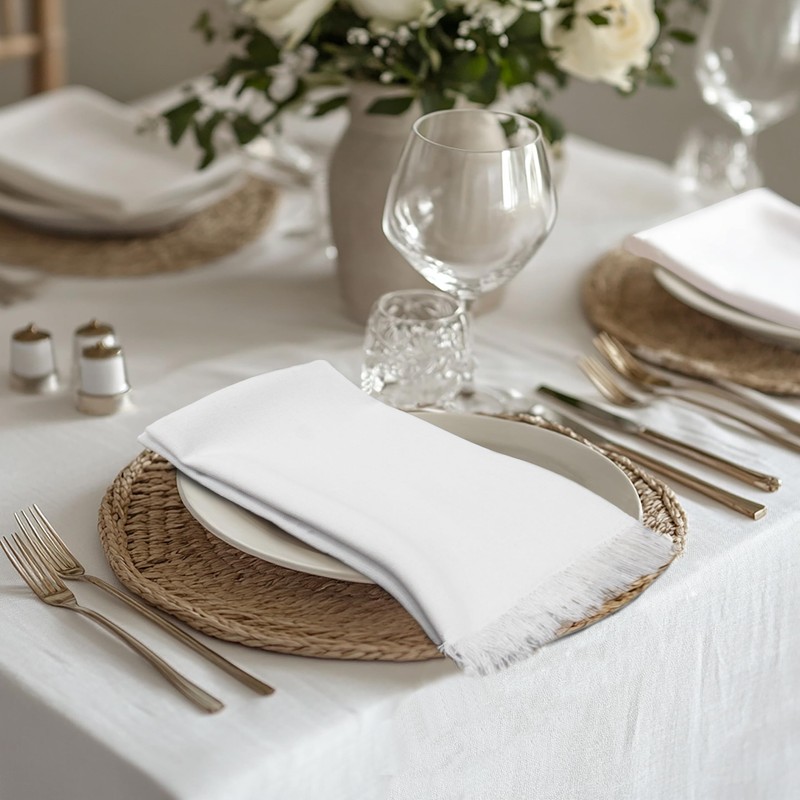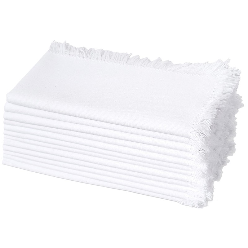 - Elegant Fringed Design White Cloth Napkins: This 12-piece set features a delicate fringed border, adding elegance and sophistication to your brunch and seasonal dining décor.