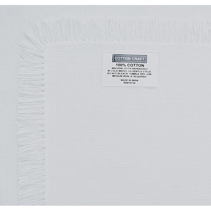 - Set Contents: Each set includes twelve (12) COTTON CRAFT Pure Cotton Lunch, Brunch, Dinner Napkins. Each napkin measures 18 inches x 18 inches. Color - White
