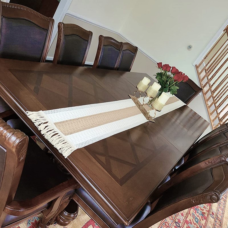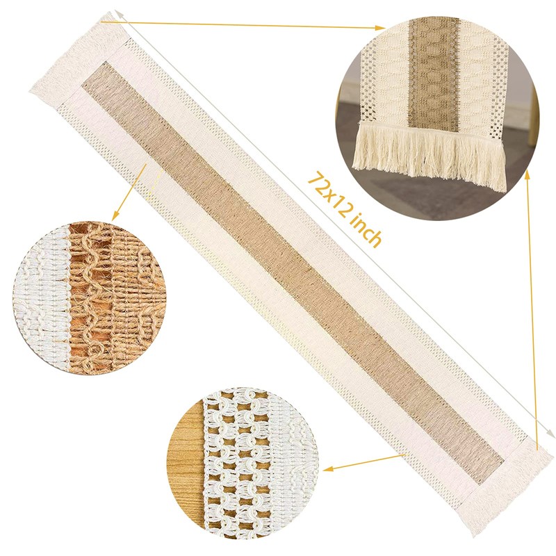 - ❤️ [ Table Runner 72 Inches Long ] - Our boho decor table runner measures 12in x72in, perfect for your home bohemian coffee dining table decor. This farmhouse table runner will give your table a elegant new look. ( In order to prevent the tassel from being messy, we have added a string to the tail of the tassel. After you receive the table flag, you can use the table flag by pulling off the rope.)