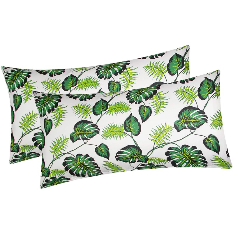 Cotton Renforcé Cushion Cover, Set of 2, 40 x 80 cm, Tropical Leaves in Green/White, Pillow Cover, Decorative Cushion Cover Made of 100% Cotton (K-031/1-Green)