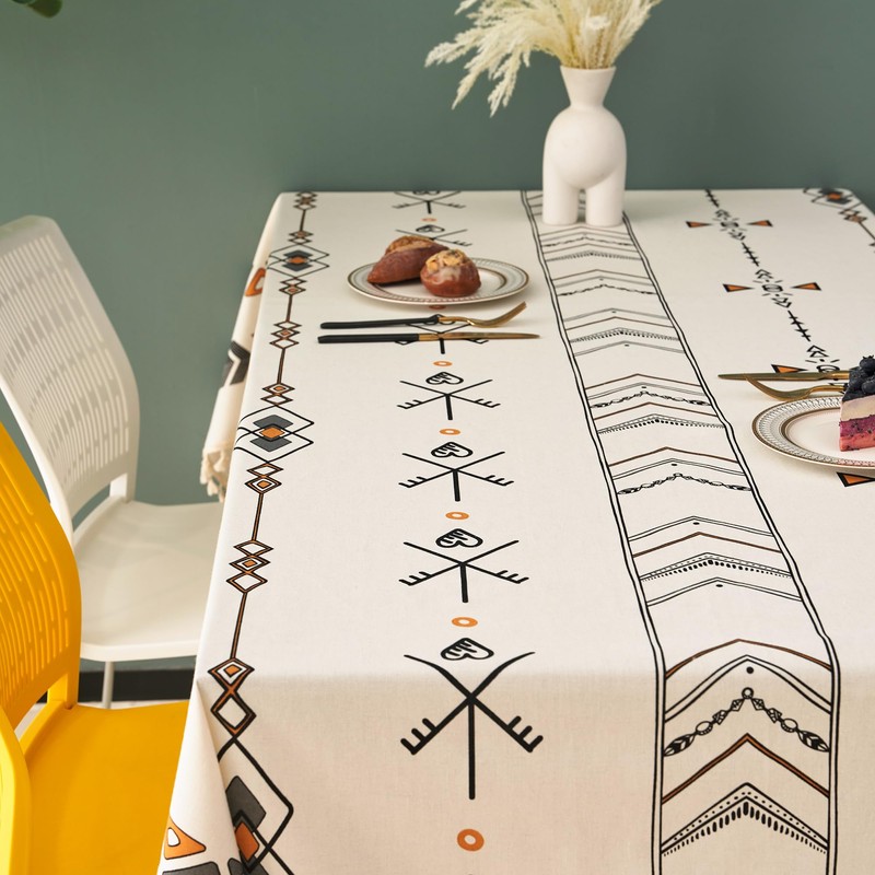 - Tablecloth with unique bohemian geometric pattern print will not only make your meal-time both fun and relaxing but also will refresh your home deco. It also has match curtains with this design series in our store.