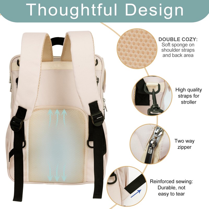 - On-the-go convenience - The wide opening and double zipper make this travel diaper bag easy to use even with one hand! Free portable diaper pads allow you to change your baby's diaper anytime, anywhere. There are 2 stroller straps that can hang the bag on the stroller. It's a good choice for mom and dad to shipping, travel and outing.