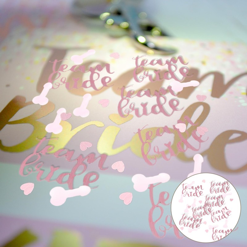 - Packaging: There is about 30g of team bride confetti, which has the patterns of "team brige", as well as the patterns of love hearts and dog bones, which is colorful