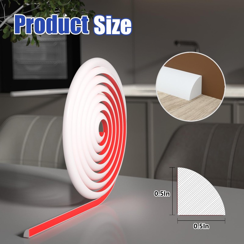 - SPECIFICATIONS:0.5" W x 0.5" H, 118" L, Flexible trim. For best results, please ensure the surface is clean and dry (no water) before installation.