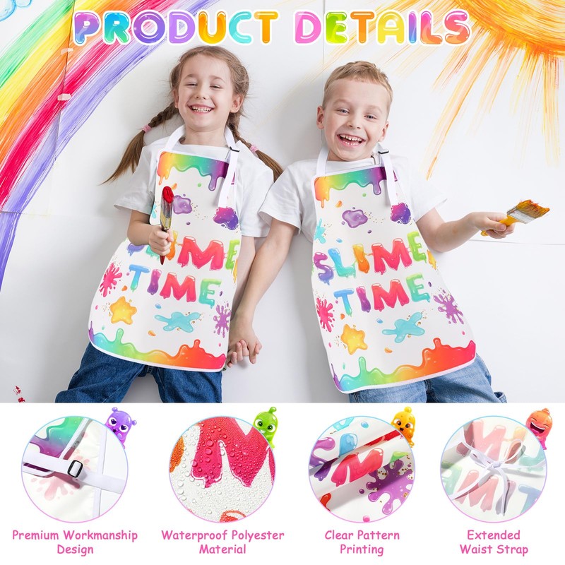 - Ideal for Group Fun: each art apron with slime time print features bright, cheerful designs that kids will love, encouraging them to get involved in the kitchen, suitable for use in painting, cooking, clothing, protection, enjoy your time with your children