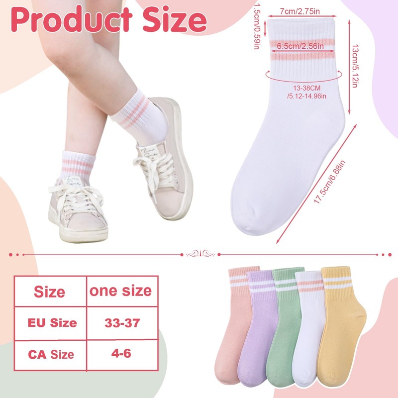 Coumy 5 Pairs Striped Socks Crew Sport Socks Crew Socks for Girls, Cotton Girls Ankle Sock Soft Casual Sock Junior Sock for Girls School Daily, Size 4-6