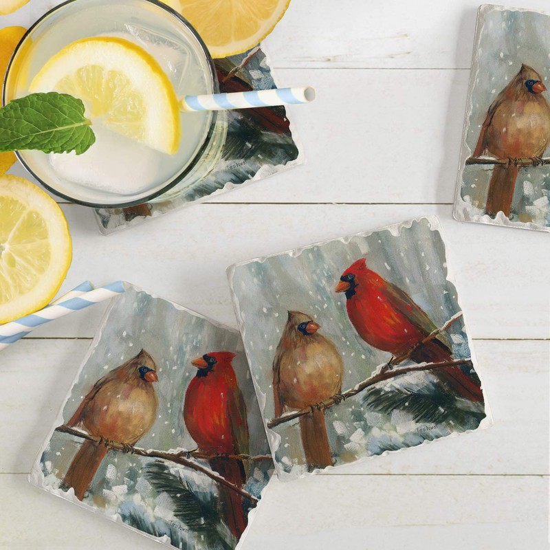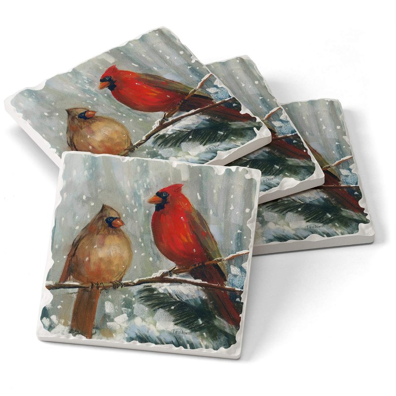 Counterart Absorbent Tumbled Tile Stone Coaster Set - Winter Birds