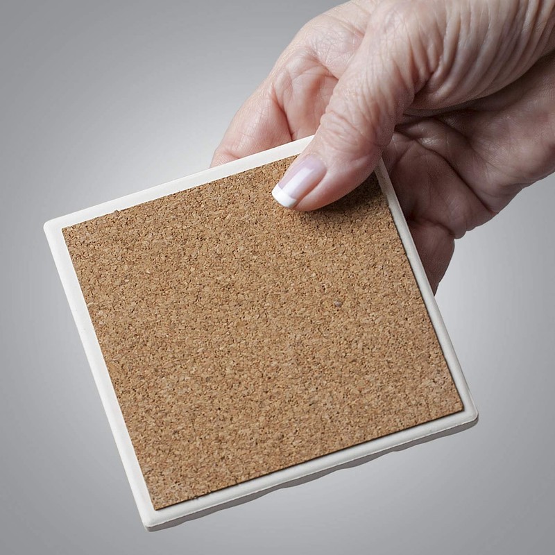 - COASTERS FEATURE a tumbled edge for a slightly rustic, yet classic appearance with a cork backing to protect your furniture, tabletop or desktop from scratches. Perfect for entertaining, in the kitchen, dining area, patio, bar, study or enjoying your morning coffee by the bedroom nightstand.
