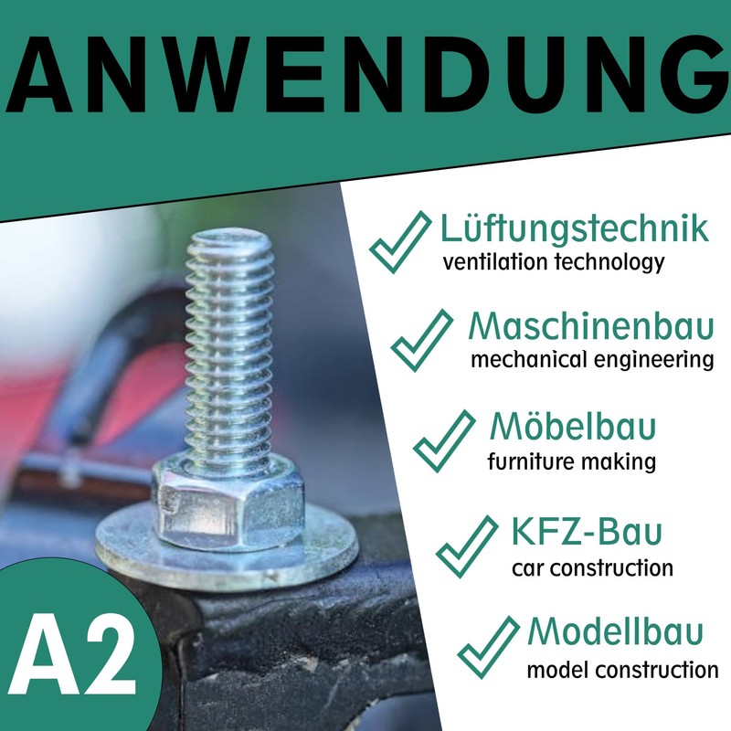 Thanks to the use of high-quality stainless steel, the countersunk screw can be used not only in dry but also in damp rooms and outdoors.