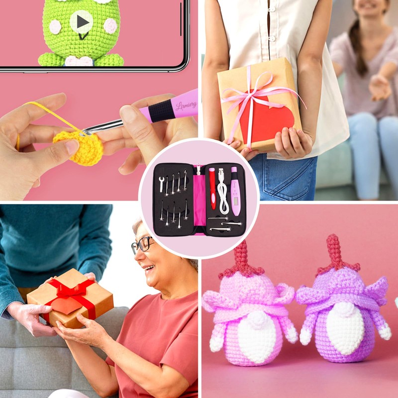 - This LED Crochet Kit with high quality crochet bag is an ideal gift for beginners, experienced people or DIYers, especially for old crocheters. Just prepare this set as a gift for Christmas, birthdays and other special occasions.