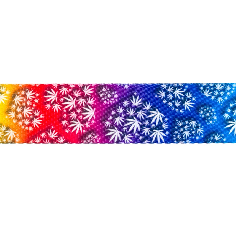 - 10 YARDS | 1 INCH WIDTH | GROOVY GANJA | If you love chronic, this Groovy Ganja Polyester Webbing is the touch of herb you need. Luminous primary colors and frosted white pot leaves are sure to bring about your ''far-out'' side.