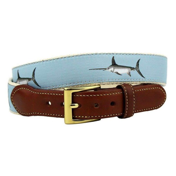 COUNTRY CLUB PREP Affable Swordfish Leather Tab Belt in Light Blue