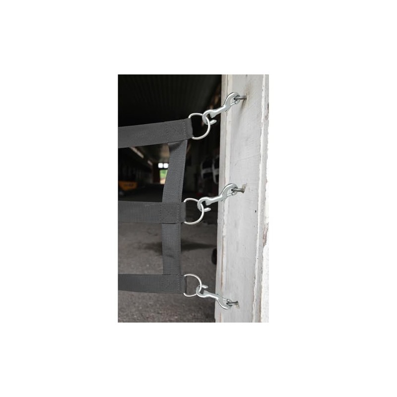 - Heavy-duty stainless steel D-ring ends Includes 6 large Open End Snaps Constructed of 2" heavyweight polypro webbing