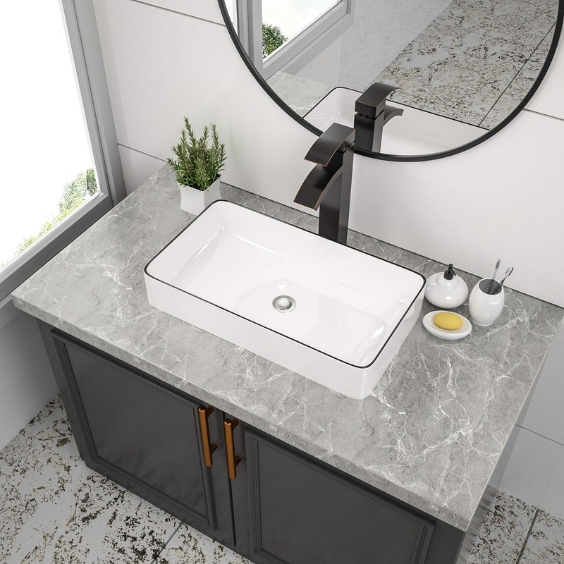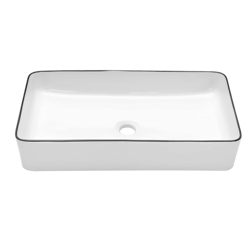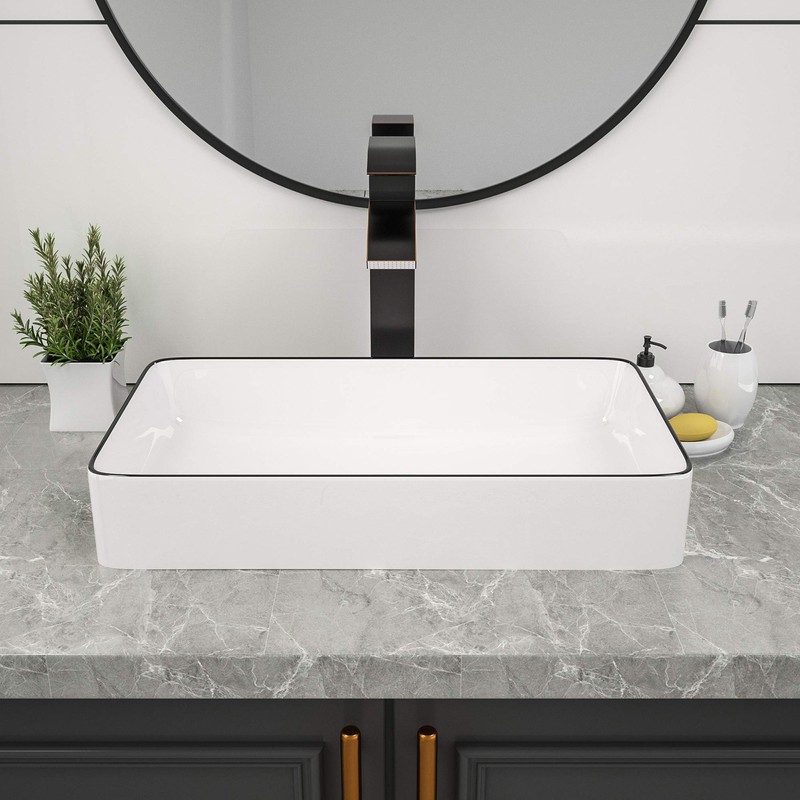 Couoko 24"x14" Rectangular Vessel Sink Above Counter Modern White with Black Edges Porcelain Ceramic Vanity Sink Basin