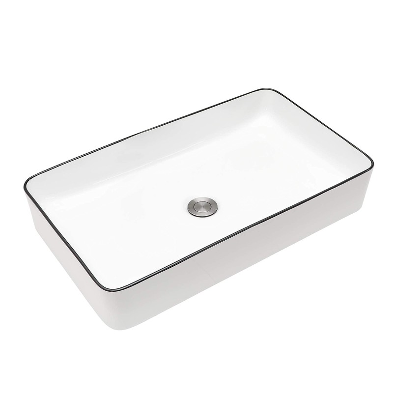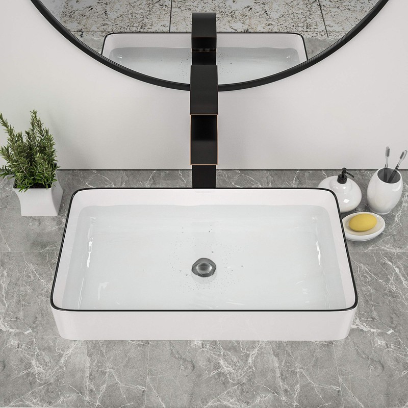 - đRefreshing Designs: The white bathroom sink body and the unique black edge of this above counter bathroom sink make your bathroom more fashionable and elegant.