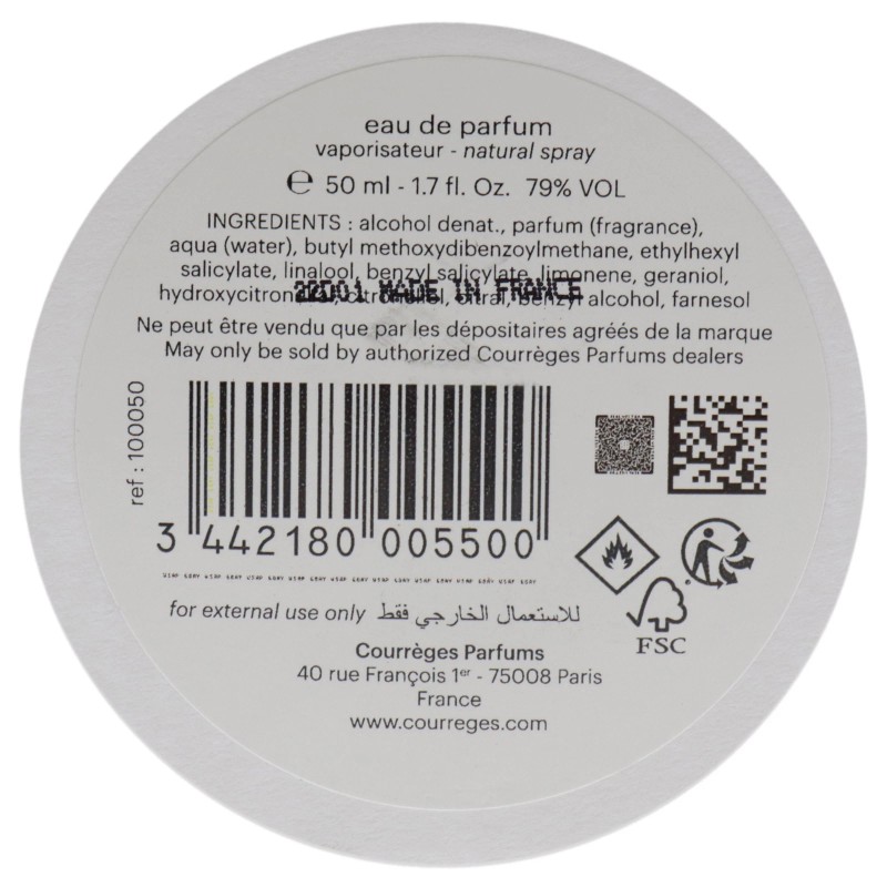"Launched by the design house of Courreges in the year 2015. This floral fragrance has a blend of This floral fragrance has a blend of orange blossom, neroli, petitgrain, ozonic notes, bergamot, musk, jasmine, neoprene, cedar, and cascalone."