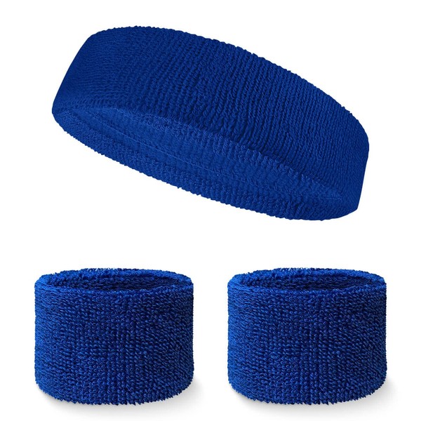 COUVER - Blue Athletic Sweatbands Set(Headband & 2PCs Wristbands) for Sports