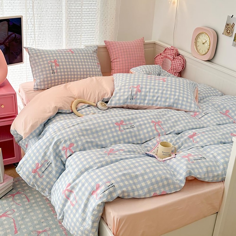 - Cute bow pattern: simple and kawaii bow pattern, very popular with girls. It is the best gift for all girls and women to beautiful room decoration. Using our romantic bedding set not only improves your sleep, but also beautifies your bedroom!