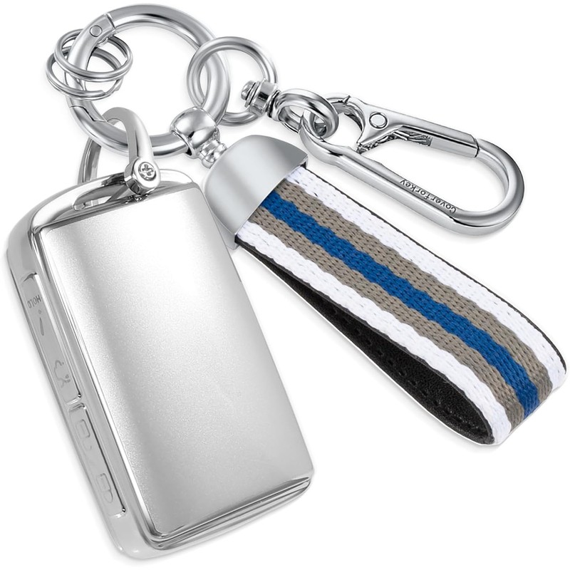Coverforkey for MZD Key Fob Cover with Nylon Webbing Keychain, Fashionable Matte Metallic Soft Case for for MZD CX-5 CX-9 Hatchback (4 buttons) Smart Key Fob Shell (Silver, B)