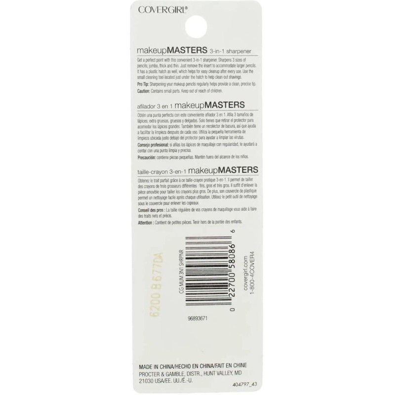 COVERGIRL Makeup Masters 3-in-1 sharpener helps you get a perfect point every time on 3 different sizes of pencils: jumbo, thick and thin. Brand Story By CoverGirl