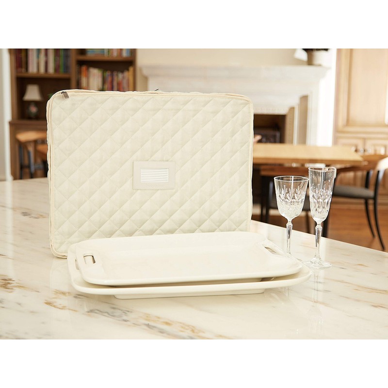 Covermates Keepsakes - Rectangular Platter Storage – Padded Protection - ID Window - Dish Storage - Cream