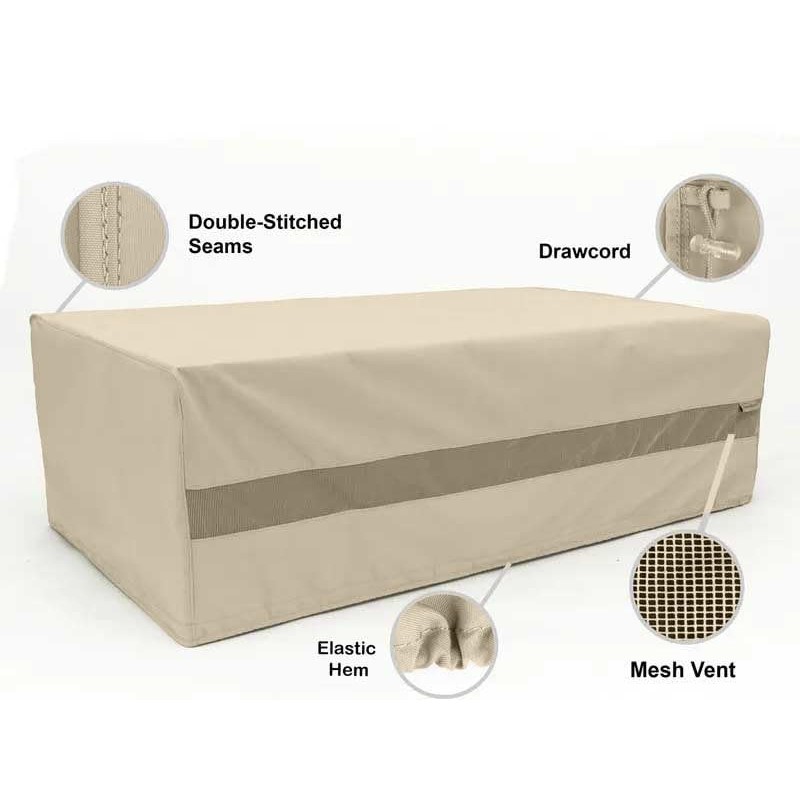Covermates Rectangular Firepit Cover – Water-Resistant Polyester, Mesh Ventilation, Fire Pit Covers, Rectangular 48W x 28D x 18H, Khaki