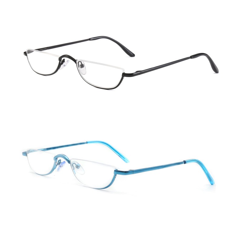 COVESATO Half Frame Reading Glasses, Half Metal Moon Readers for Women Men 2 Pairs 1.75