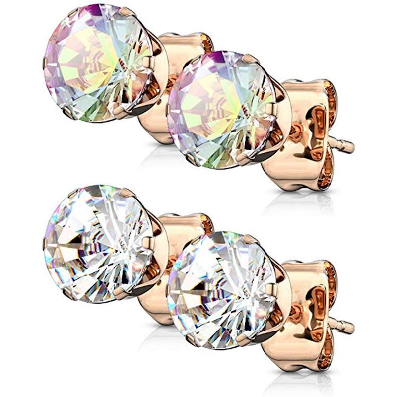 Covet Jewelry Pair of Rose Gold IP Over 316L Stainless Steel Stud Earring with Round CZ (20GA, Ball: 8mm, Aurora Borealis)